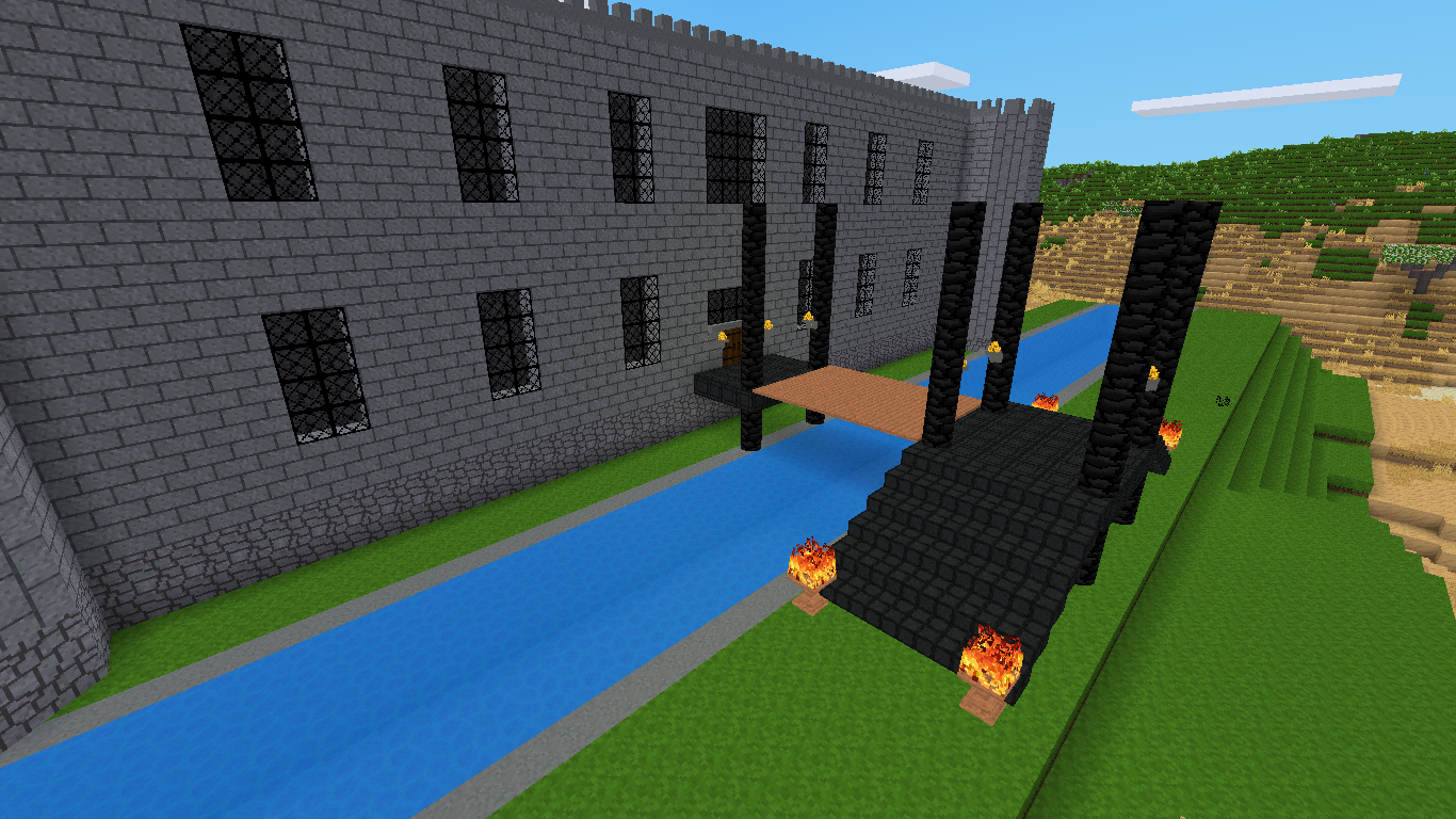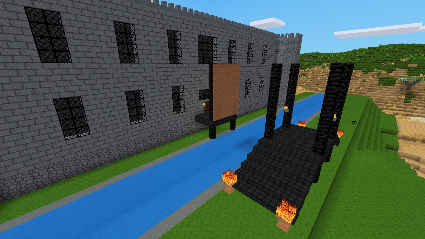 There is a couple sizes of drawbridges you can use. Right click them and they go up or down.