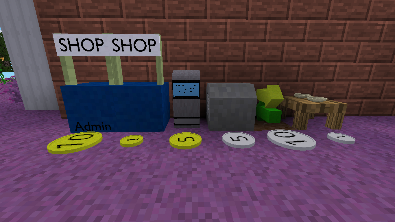 There are admin shops that the server owner can set up to sell items. People can craft a shop to sell things. There is also a vending machine you can craft to sell items.