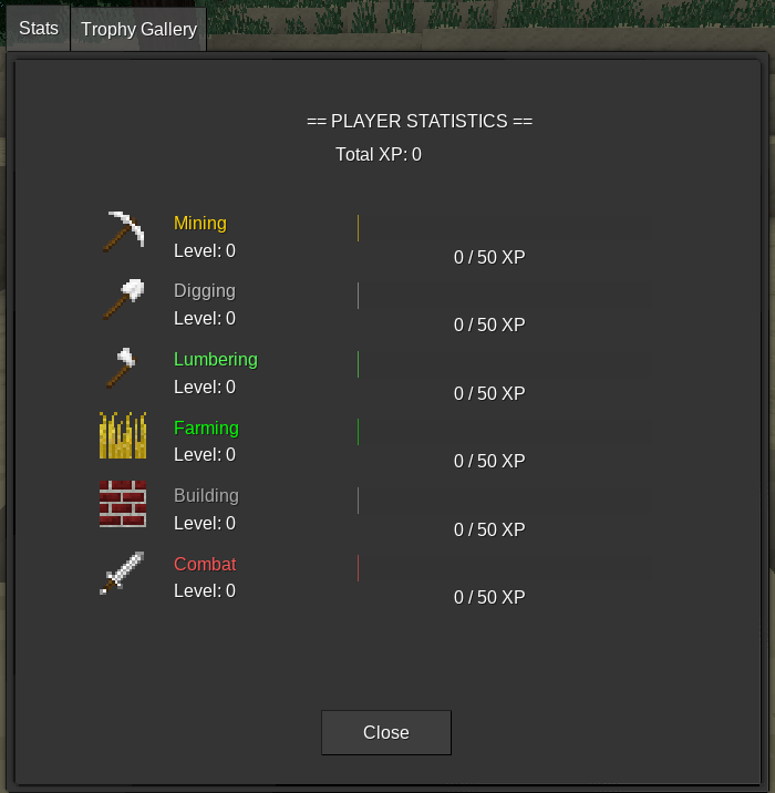A comprehensive progression system for Luanti that tracks player actions, awards experience points (XP), and grants trophies for major milestones.